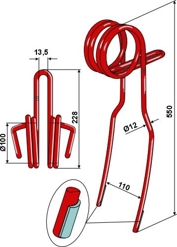 Väderstad efterharvetand 12 mm dobbelt laser cladding forstærket.